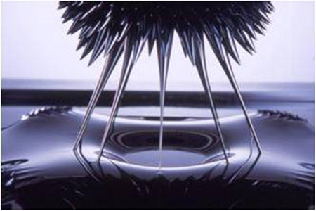液態金屬液滴在微開關、微泵、焊料、金屬零部件製作乃至3D打印金屬粉末等方面有獨特的應用價值。在醫學實踐中,研製可沿血管包括人體自然腔道運動,以承擔各種在體內醫學服務的柔性機器人。在工業領域,還可以利用金屬的流動性,研究新型的導熱介質,迅速高效的傳遞熱量,可以促進生產,保護環。
