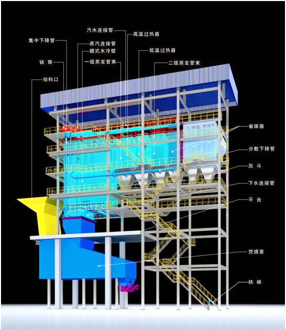 3、針對(duì)高濃度、高處理量含鹽廢液采用一體化焚燒鍋爐對(duì)含鹽廢液進(jìn)行焚燒處理。采用特殊設(shè)計(jì)的燃燒器布置方式,助燃空氣分級(jí)送入與廢液充分混合燃燒,可以實(shí)現(xiàn)含鹽廢液的完全熱分解,保證熔融鹽從爐底流出,產(chǎn)生蒸汽供工廠使用。